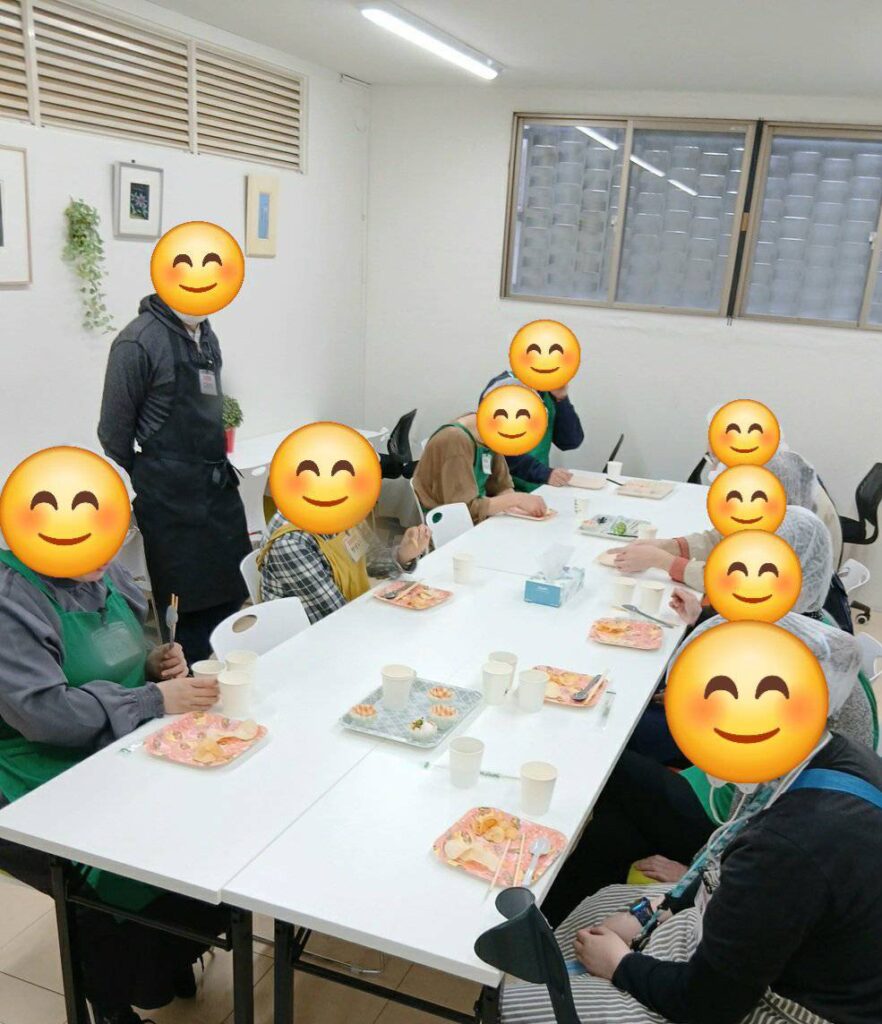サンファミリーの利用者さんは、休憩中でも会話があり楽しく和気あいあいと過ごしています。