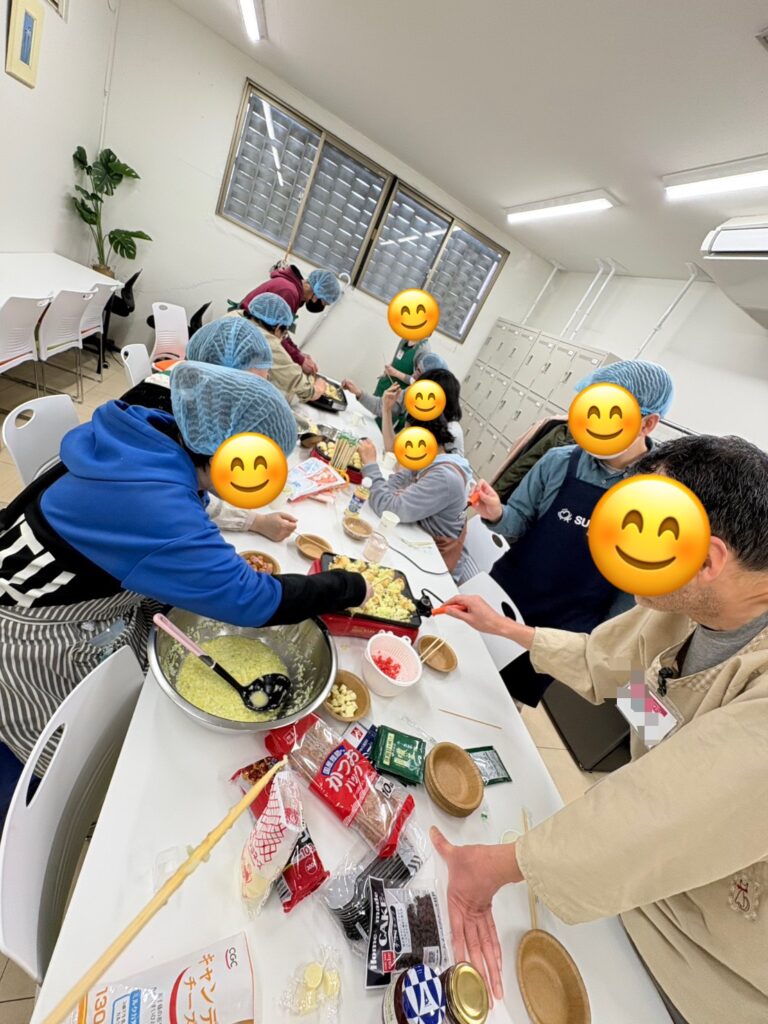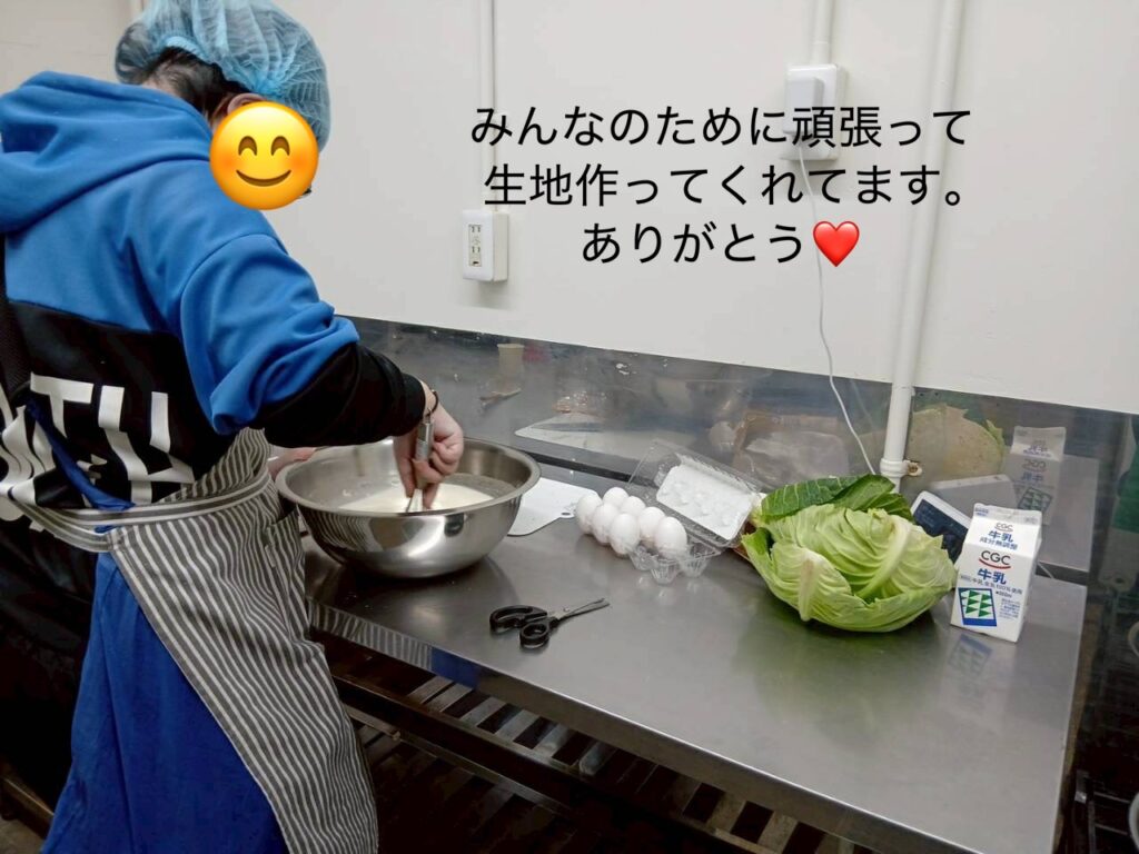 たこ焼きパーティーを行いました。下ごしらえから手伝ってくれる利用者さん・たこ焼きを焼くお仕事をしてた利用者さん・それをみんなで試行錯誤しながら手伝ってどんな具を入れようか・ころころ転がして焦げないようにしてくれる利用者さんなどたくさんの人が楽しく参加してくれました。会話も弾み笑い声が絶えない時間でした。